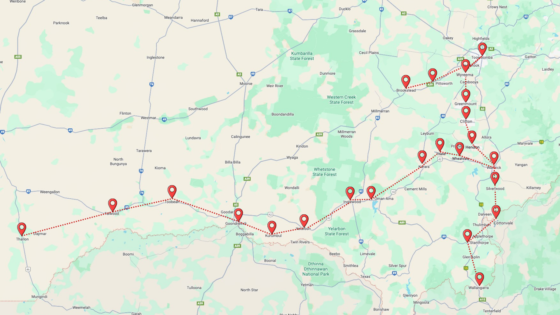 - Travel from Toowoomba to Stanthorpe via Warwick